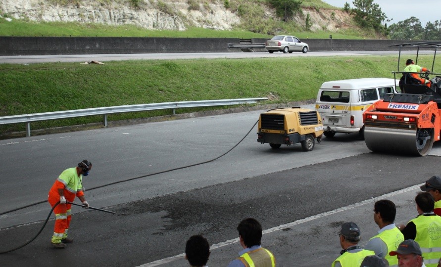 4) Jato de ar comprimido para limpeza e remoção de pequenos agregados sobre a superfície da camada aplicada.