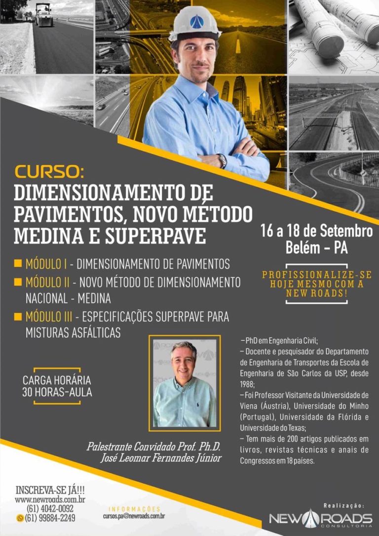 Treinamento será ministrado pelo pesquisador da USP, o eng. civil José Leomar Fernandes Júnior A New Roads Consultoria promove em Leia Mais