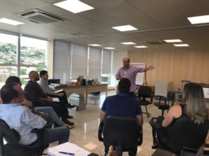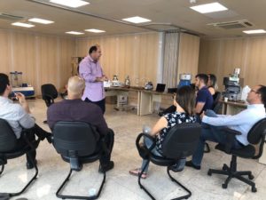 O Eng. Elci Pessoa Junior orientando a equipe de engenharia do Tribunal de Contas do Estado de Santa Catarina quanto à utilização de laboratório de solos e asfalto como ferramenta para diversos procedimentos de auditoria que podem ser executados em obras rodoviárias e pavimentações urbanas.