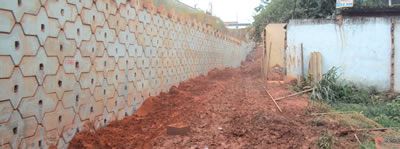 Descrição: também conhecida como terra armada, utiliza placas de concreto – também chamadas de escamas -, armaduras e a própria terra como materiais estruturais. As escamas são montadas à medida que a terraplanagem avança. Com isso, ao término do espalhamento e da compactação, tem-se o solo armado finalizado.