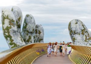 Chama-se “Ponte Dourada” e é uma peculiar obra-de-arte pedonal, recentemente construída na cordilheira montanhosa de Ba Na, na zona de Da Nang, no Vietname. É caracterizada por possuir uma das secções do tabuleiro de 150 metros de comprimento, aparentemente suportada por duas gigantescas mãos de pedra. A ponte, situada a cerca de 1400 metros de altitude, oferece aos visitantes vistas únicas sobre o Parque Natural de Thien Thai.
