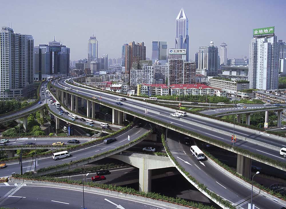 Este é um dos mais movimentados e maior intercâmbio de Xangai, que atende a milhares de veículos a cada hora.